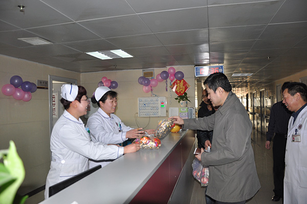 2016年2月8日,市中醫(yī)醫(yī)院黨政領(lǐng)導(dǎo)任少杰、王玉凱、張仁喜等慰問節(jié)日值班醫(yī)務(wù)人員,向堅(jiān)守崗位服務(wù)的各位值班人員送去節(jié)日的祝福和慰問。